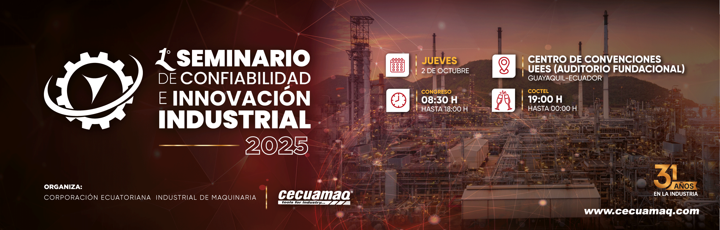 Aprovechamos los 31 años de Cecuamaq (Corporación Ecuatoriana Industrial de Maquinaria) para celebrarlo junto a nuestros clientes y aliados en el congreso de últimas tecnologías en la industria.